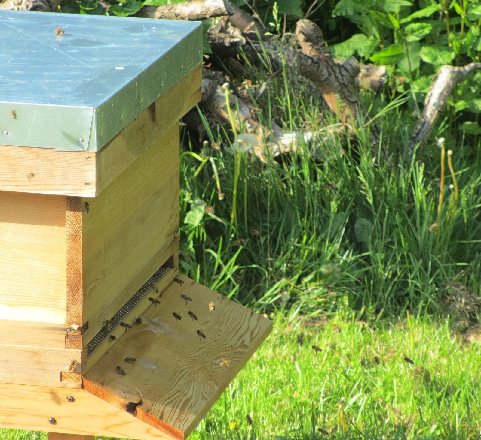The debate is now on whether or not to paint the hive. It is cedar so will weather to a silvery colour. My friend who keeps bees has his in cream and a lot of commercial beekeepers have them in dark green, it's a slight camouflage.